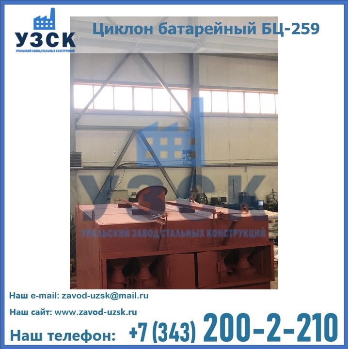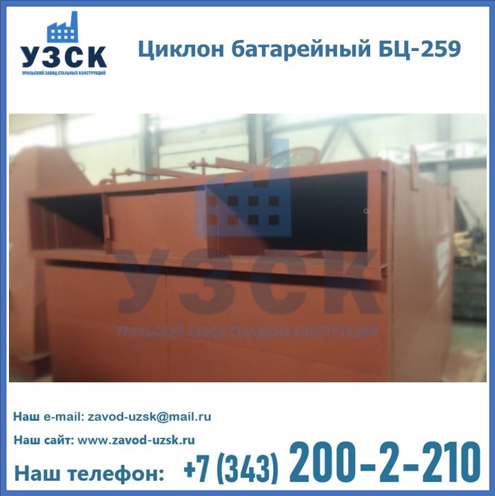 Приобрести качественное оборудование, в том числе, циклоны БЦ-259, можно в компании УЗСК в Копейске. Мы предлагаем долговечную и надежную продукцию по приемлемой цене. Заказать и купить циклоны или другие изделия высокого качества можно через сайт Уральского Завода Стальных Конструкций, или позвонив по указанному в разделе «Контакты» телефону.