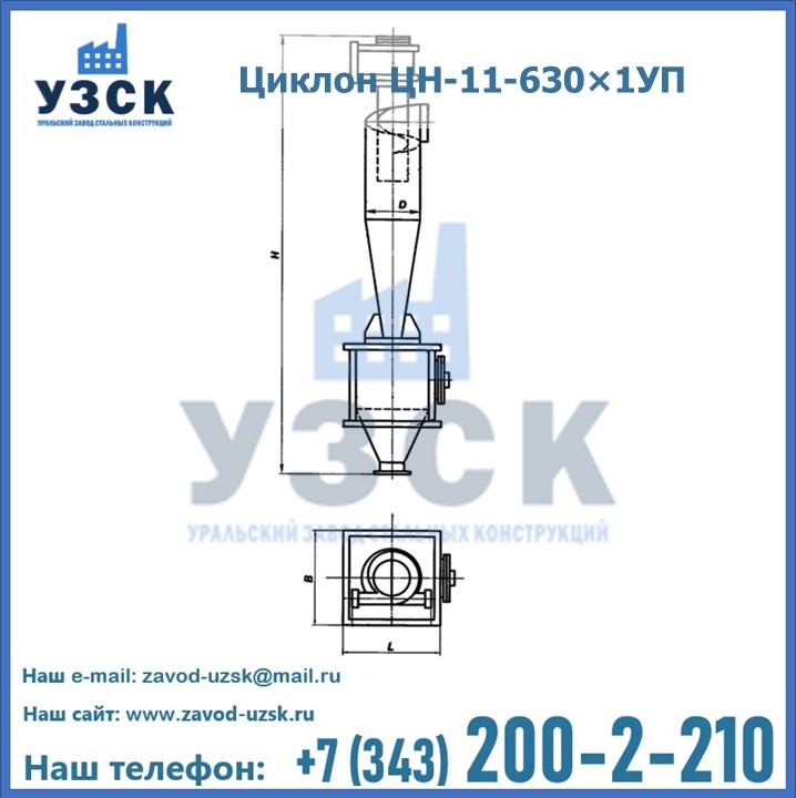 Уральский Завод Стальных Конструкций в Копейске производит и продает надежное, эффективное и производительное оборудование, имеющее длительную гарантию и большой эксплуатационный ресурс. УЗСК также предлагает циклоны из нержавеющей стали высокого качества. По желанию заказчика толщина стали для циклона и бункера может быть увеличена. Заказать и купить циклоны ЦН-11 высокого качества и по доступной цене можно через наш сайт или по указанному в разделе «Контакты» телефону.