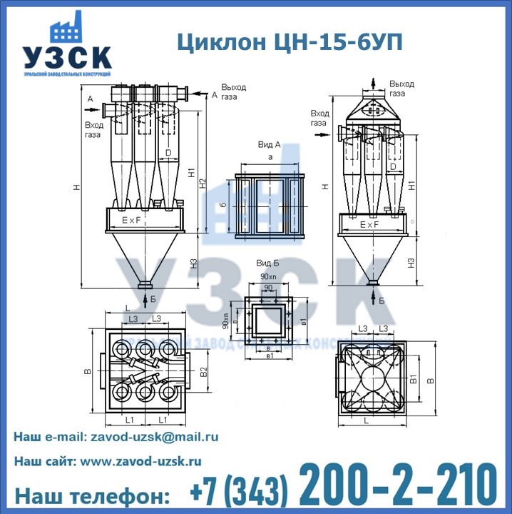 Завод «УЗСК» в Копейске предлагает большой выбор циклонов ЦН-15-900×6УП и прочих устройств, полностью укомплектованных и готовых к эксплуатации. Мы гарантируем соответствие оборудования всем требованиям ГОСТ и ТУ, износостойкость и высокую производительность предлагаемого оборудования. Уральский Завод Стальных Конструкций изготавливает и продает надежное, эффективное и производительное оборудование, имеющее длительную гарантию и большой эксплуатационный ресурс. Если требуется изготовить циклон нестандартных размеров, то такой вариант выполнения заказа тоже предусмотрен, так как предприятие имеет собственные производственные площади и надежных поставщиков. На все поставляемое или производимое оборудование имеются чертежи и прочая техническая документация. Заказать и купить циклоны или прочее оборудование высокого качества и по доступной цене можно через наш сайт или по указанному в разделе «Контакты» телефону.