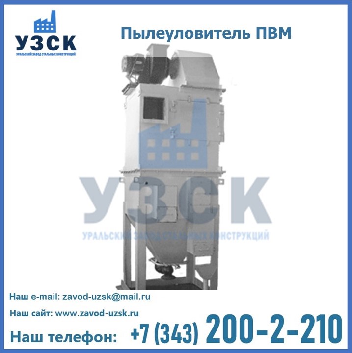 Вентиляционные мокрые пылеуловители ПВМ применяются в процессе очистки воздуха посредством вытяжных вентиляционных систем. Воздух очищается от мелко и среднедисперсной пыли, а также от волокнистой взрывоопасной пыли и прочих, которые плохо смачиваются, а потому обладают высоким риском взрывоопасности, и всплывают на поверхность. Пылеуловители ПВМ обладают высокой противодетонационной защитой. На Уральском Заводе Стальных Конструкций в Копейске осуществляют производство и реализацию пылеуловителей ПВМ, в том числе согласно техническому индивидуальному заданию заказчика.