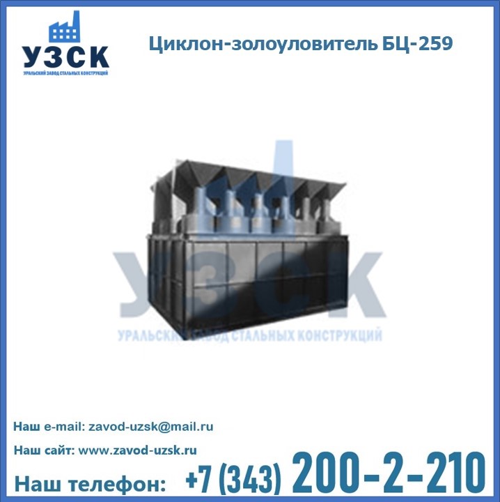 Если вы планируете купить то или иное оборудование, например, циклоны-золоуловители БЦ-259, то рекомендуем заказать данный товар на сайте УЗСК. Мы производим и реализуем продукцию высокого качества по приемлемой цене. Эксперты Уральского Завода Стальных Конструкций в Копейске проконсультируют вас по всем вопросам, помогут сделать выбор и оформить заказ без лишних временных затрат. Мы гарантируем соответствие нашей продукции всем требованиям ГОСТ и ТУ, а также износостойкость и высокую производительность предлагаемого оборудования. Если требуется изготовить циклон нестандартных размеров, то такой вариант выполнения заказа тоже предусмотрен, так как предприятие имеет собственные производственные площади и надежных поставщиков. На все поставляемое или производимое оборудование имеются чертежи и прочая техническая документация. Заказать и купить циклоны или прочее оборудование высокого качества и по доступной цене можно через наш сайт или по указанному в разделе «Контакты» телефону.
