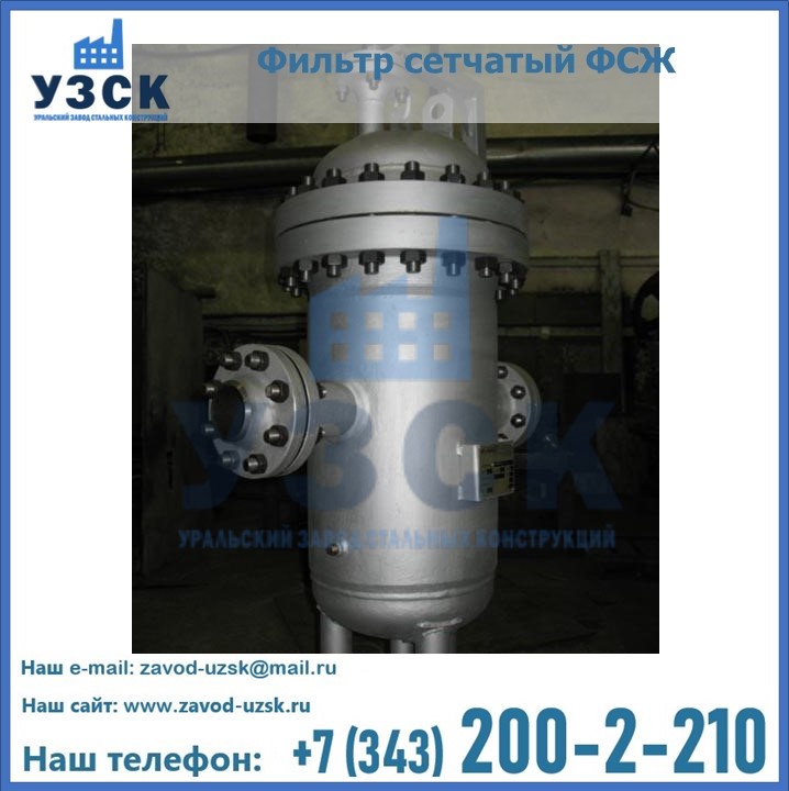 Очистку перекачиваемых жидкостей на предприятиях нефтяной, пищевой, горнорудной, фармацевтической и других отраслей промышленности эффективно выполнять с помощью жидкостного сетчатого фильтра — емкостное оборудование цилиндрической формы со съемной крышкой и элементом фильтрации внутри. Оснащенные им всасывающие линии насосных станций и установок защищены от проникновения твердых частиц в функциональные узлы гидравлической системы. Оборудование служит для перекачивания токсичных, агрессивных и иных эмульсий, суспензий, жидкостей. Купить фильтр сетчатый жидкостный ФСЖ в Копейске с гарантией производителя предлагает «Уральский завод стальных конструкций». Мы выполняем проектирование и изготовление ФСЖ по индивидуальным требованиям (климатическая зона, транспортируемая жидкость).