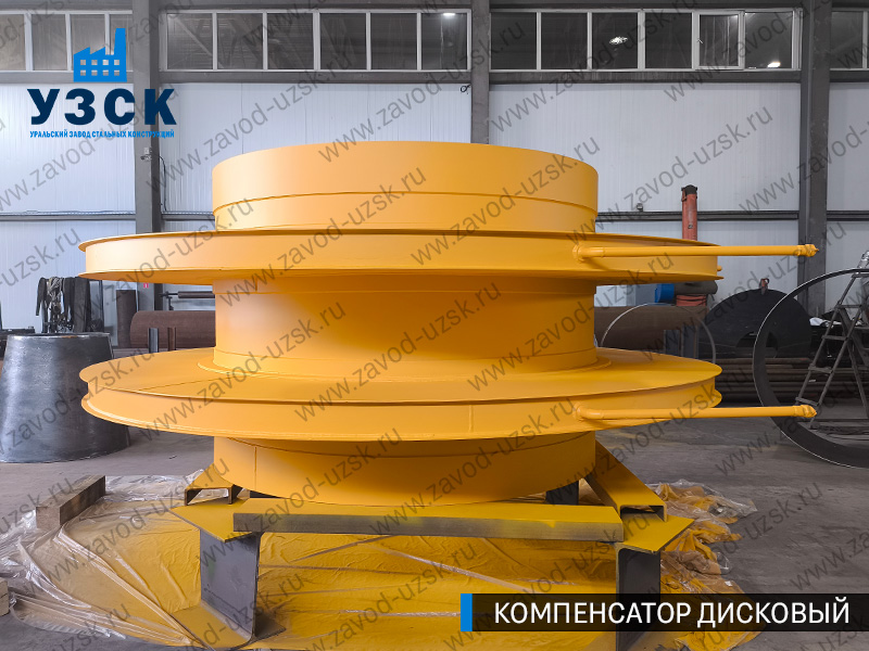 Дисковые компенсаторы – это приборы, устанавливаемые на трубопроводах с давлением потока 1 кг/см2, его основное предназначение заключается в предохранении системы от чрезмерных напряжений, вызываемых изменениями температуры стенок. Компенсирующее действие обосновано упругостью дисков, диаметр которых значительно превышает диаметр газопровода, в результате чего при удлинении газопровода диски сближаются, а при укорачивании – расходятся. Уральский Завод Стальных Конструкций в Копейске реализует дисковые компенсаторы, в том числе осуществляя их производство на заказ по индивидуальному техзаданию.