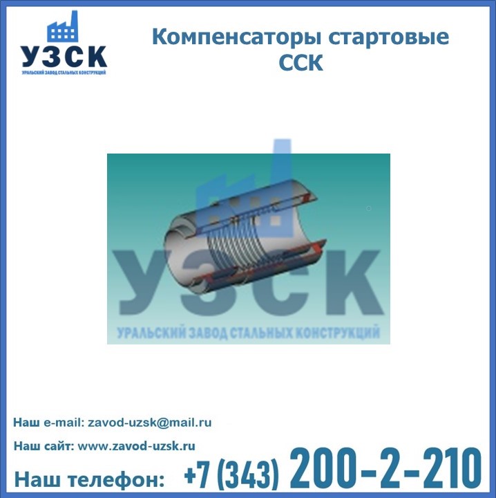 Стартовые компенсаторы, при прокладке прямолинейной системы труб, устанавливается через интервалы, установленные в проекте. В готовую траншею по всей протяженности системы, кроме участков, оборудованных ССК, засыпается грунт. В процессе первоначального нагревочного пуска трубной системы происходит удлинение труб, в результате этого сильфоны стартовых компенсаторов сжимаются. Внешняя стальная оболочка компенсаторов, после нагревания, приваривается. Трубы таким образом фиксируются в грунте, а последующие температурные перепады трансформируются в допустимые стабильные напряжения. Уральский Завод Стальных Конструкций предлагает готовые изделия, а также оборудование под заказ. Наш завод располагает всеми необходимыми возможностями для производства нестандартных компенсаторов ССК. Завод «УЗСК» предлагает большой выбор качественных и надежных сильфонных стартовых компенсаторов, полностью укомплектованных и готовых к эксплуатации. Мы гарантируем соответствие нашей продукции всем требованиям ГОСТ и ТУ, износостойкость и высокую производительность. Наше предприятие поставляет и производит оборудование, имеющее длительную гарантию и большой эксплуатационный ресурс. Если вы хотите заказать сильфонные компенсационные устройства ССК или другое оборудование с доставкой, наши специалисты помогут рассчитать стоимость транспортных расходов и организуют перевозку товара. Вы можете оформить заказ на продукцию на нашем сайте в Копейске, для этого достаточно заполнить форму обратной связи.