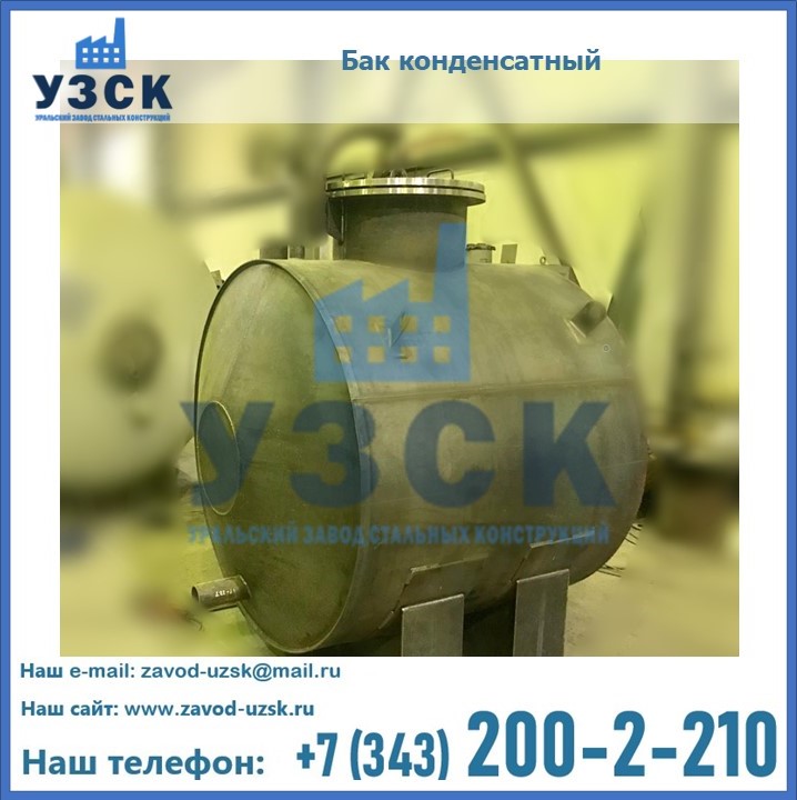 Многие заказчики стараются конденсатные баки купить по выгодной цене в компании «УЗСК» в Копейске. Причин несколько. Производитель поставляет емкости с полным комплектом лестниц, площадок обслуживания. Бак после гидравлических испытаний покрывают специальной внутренней и наружной краской, накладывают теплоизоляцию или наваривают крепеж для навески минматов. Условия теплоизоляции согласуются с заказчиком.