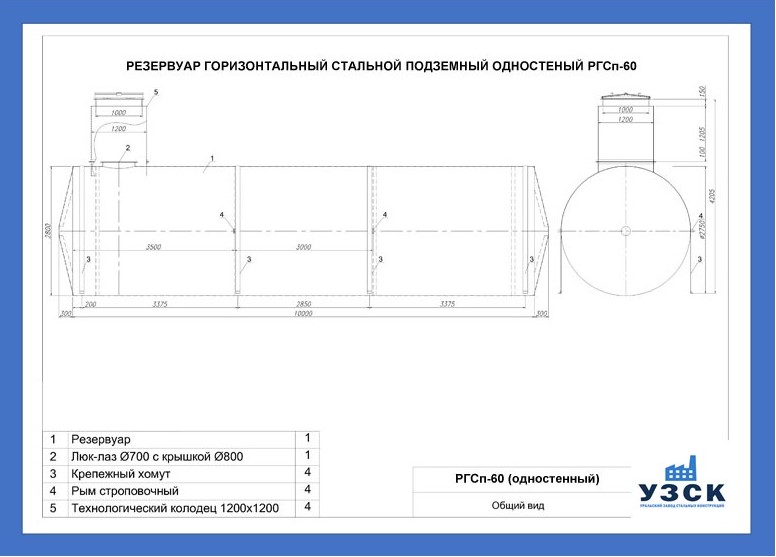 РГСн-60: горизонтальный резервуар одностенный наземного расположения;